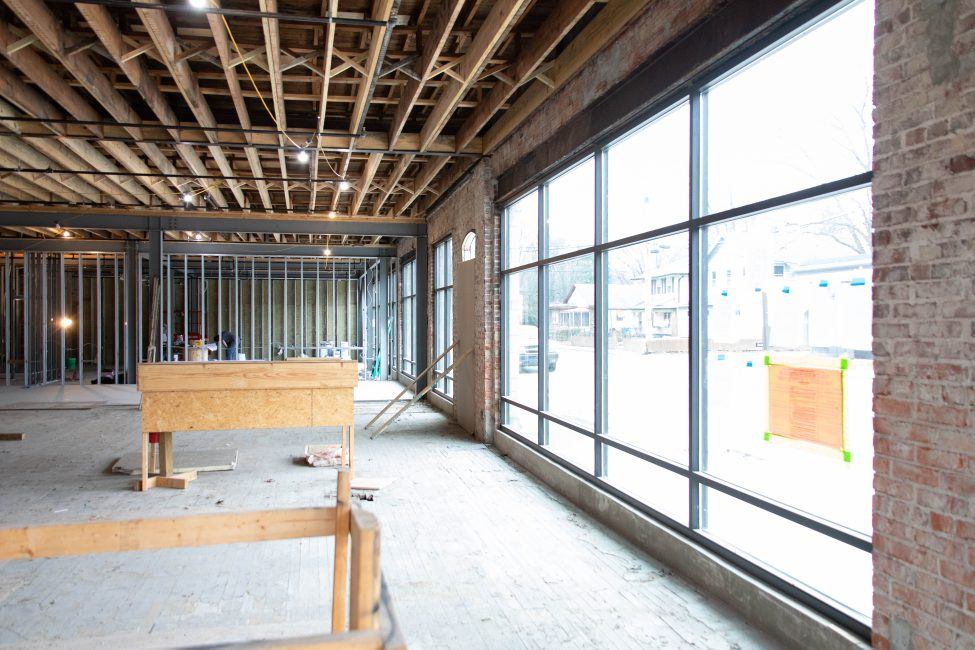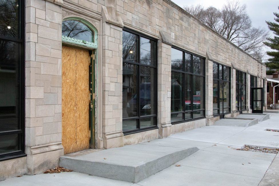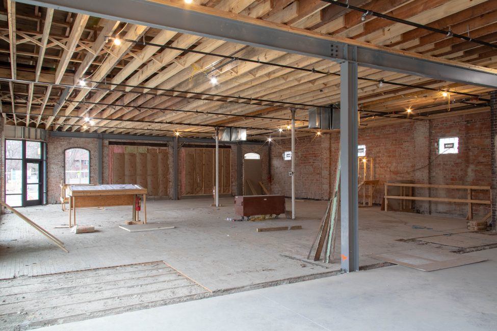 and a robust interior structural steel frame to support the renovated brick and limestone exterior walls. Now serving as a bustling retail center, this building is home to a renowned chef-driven restaurant, a cozy tap room, and a retail store, marking a successful transformation into a vibrant community hub.